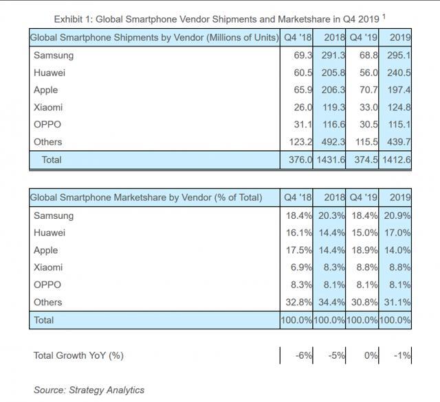 最近关于2019年手机商场的数据纷繁发布,其间在Canalys的数据中,小米在国内手机商场位居第四,前三是华为、OPPO、vivo。而在Strategy Analytics发布的数据中,小米在2019年全球手机商场也位居第四,仍然超越OPPO,比较稳定。