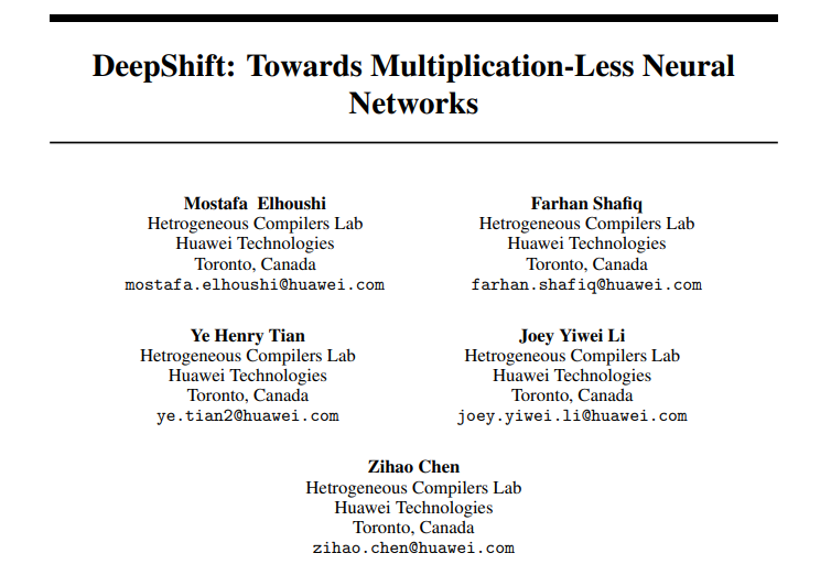华为的这篇论文提出了解决该问题的新方法,即引入两种新型运算:卷积移位(convolutional shift)和全连接移位(fully-connected shift),从而用按位移位(bitwise shift)和按位取反(bitwise negation)来取代乘法。使用了卷积移位和全连接移位的神经网络架构族即 DeepShift 模型。DeepShift 模型可以在不使用乘法的情况下实现,且在 CIFAR10 数据集上获得了高达 93.6% 的准确率,在 ImageNet 数据集上获得了 70.9%/90.13% 的 Top-1/Top-5 准确率。