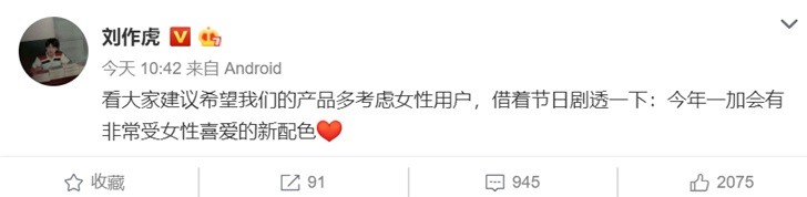 看咱们主张期望咱们的产品多考虑女人用户,借着节日剧透一下:本年一加会有十分受女人喜欢的新配色。